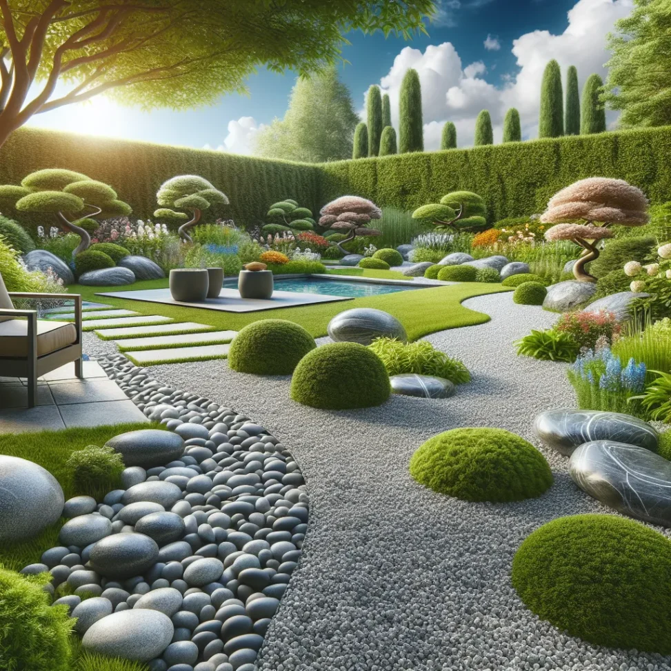 Nagłówek 1: Innowacyjne trendy w aranżacji ogrodu z granitowym grysiem i otoczakami